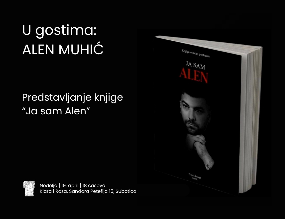Predstavljanje knjige i razgovor sa autorom Alenom Muhićem iz Bosne i Hercegovine, održaće se u nedelju, 19. aprila od 18 časova u prostoru Klare i Rose (Šandora Petefija 15).